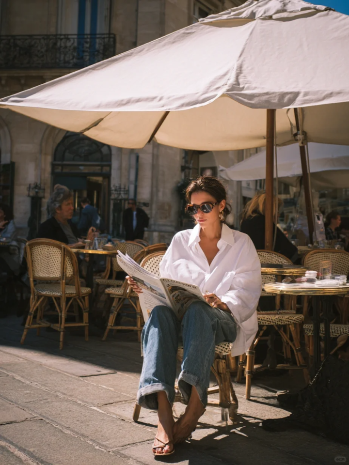 白衬衫以 “永不过时” 的经典属性打底,自带清爽、干净的视觉滤镜,中和了牛仔材质的厚重感,让整体造型更显利落。