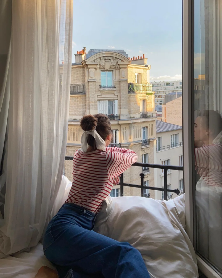 也可以搭配宽松的衬衫,一身松弛显得更加惬意迷人。